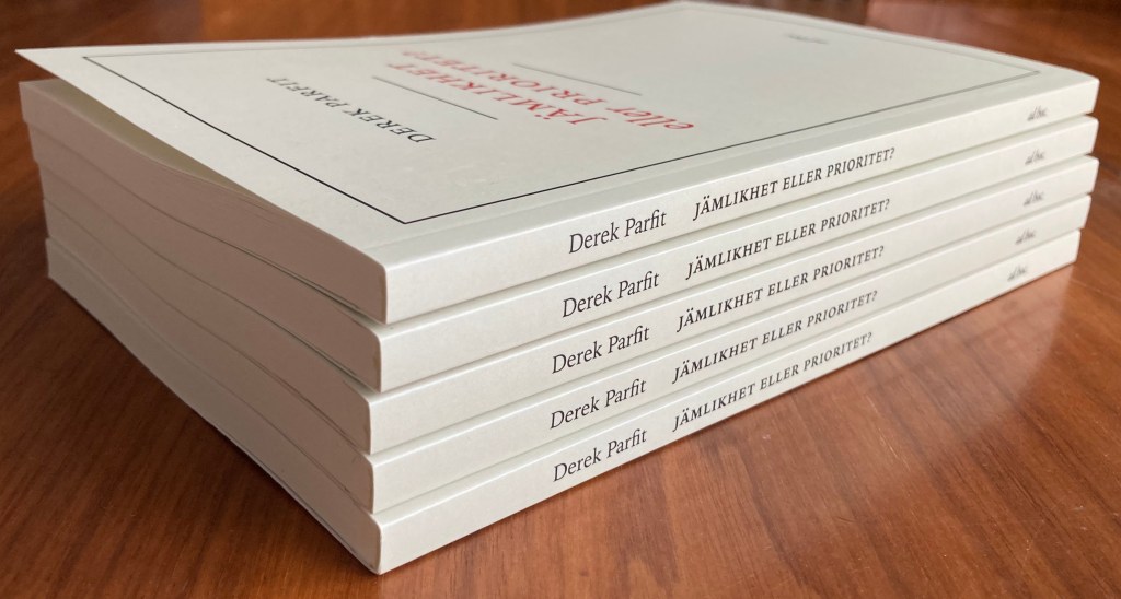 Dessutom synliggjorde han allvarliga misstag i våra moraluppfattningar. Som i denna text där Parfit undersöker vad vi menar med jämlikhet, och framför allt om vi bör värdera jämlikhet, och i så fall hur. Parfit undrar om det inte är viktigare att bistå dem som har det sämst i stället för att bry sig så mycket om skillnader mellan människor.