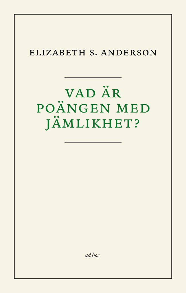 Så inleder Elizabeth Anderson sin kritik av samtida egalitära teorier. Hon menar att den dominerande egalitarismen helt missar målet.