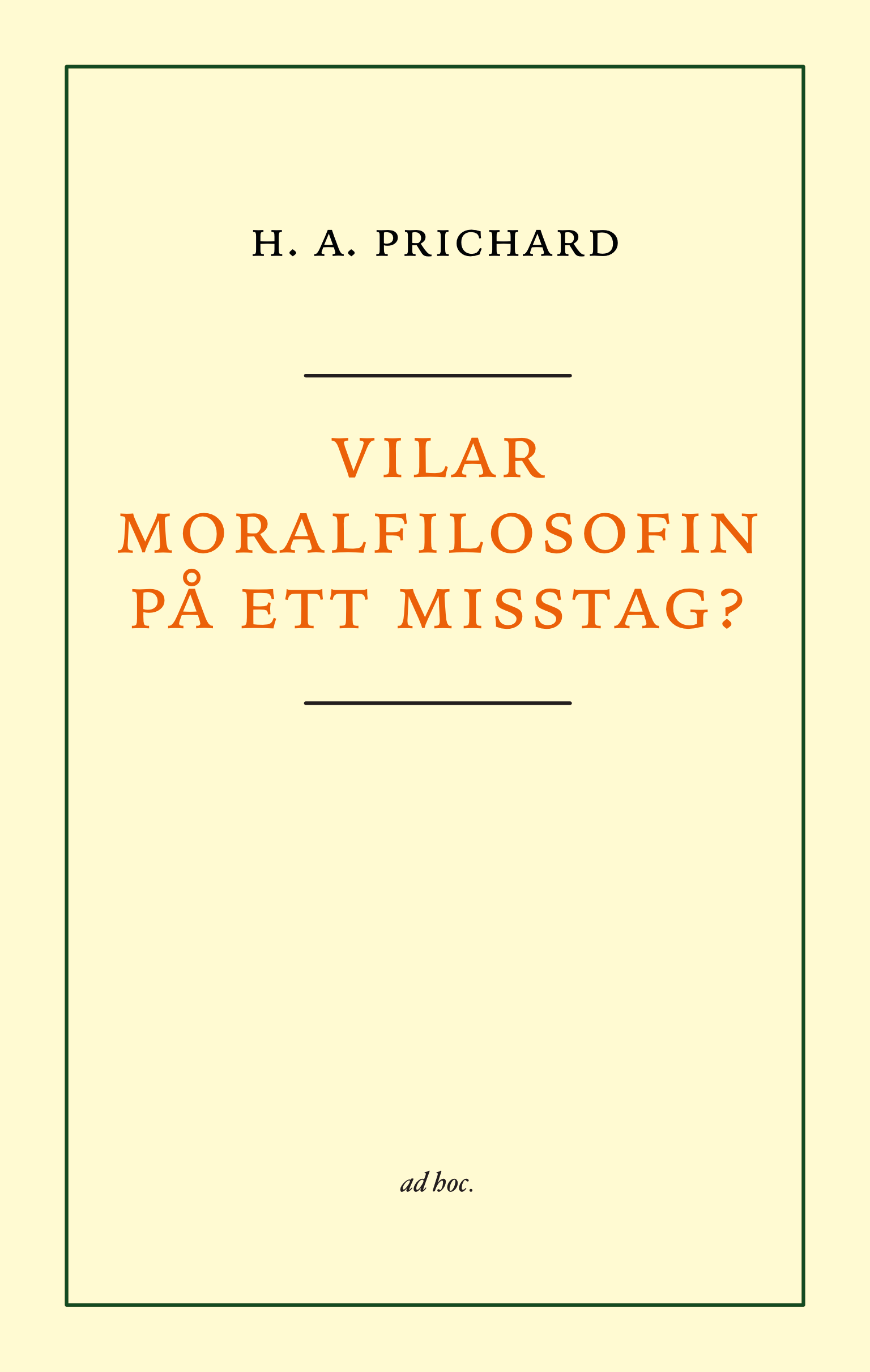 Det är dock helt i sin ordning, menar Prichard. För grundläggande etiska principer är sådana att de inte kan bevisas. Det är i stället våra förväntningar som är felaktiga och vi blir besvikna för att vi söker efter bevis för något vi redan var övertygade om, men som inte kan bevisas. Prichard föregriper i denna text resonemang hos några av vår tids mest inflytelserika filosofer, som Derek Parfit, T M Scanlon och Thomas Nagel.